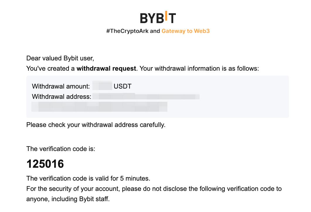If your address is verified in the Withdrawal Address Whitelist, you won’t need to go through the 2FA verification process, and you can submit the withdrawal request as below. To verify your withdrawal wallet address, you can follow this guide.