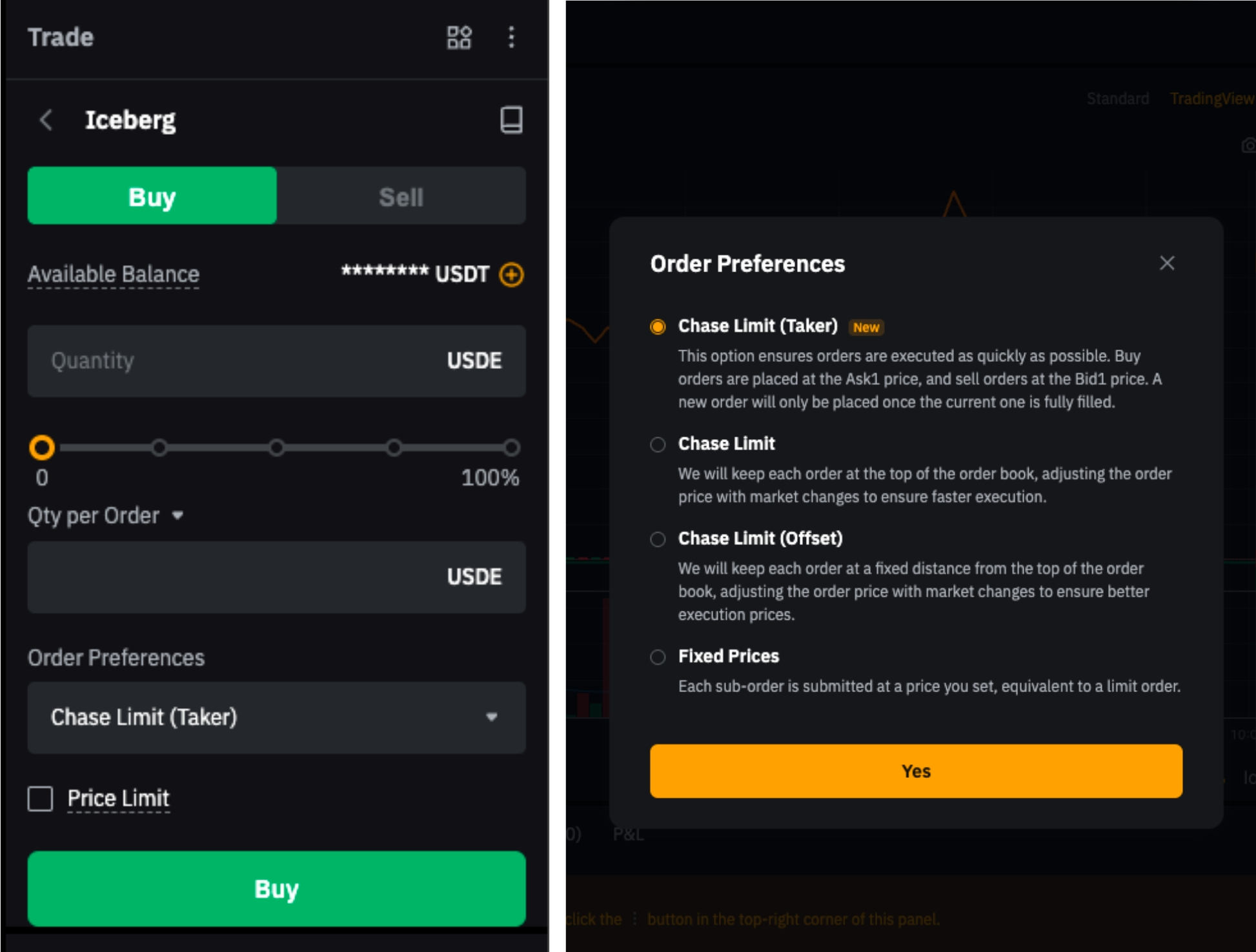 The Price Limit feature adds an additional layer of control to your orders, ensuring orders align with market conditions. Orders will only be placed when the price is more favorable than the price limit and will pause if the price becomes less favorable.