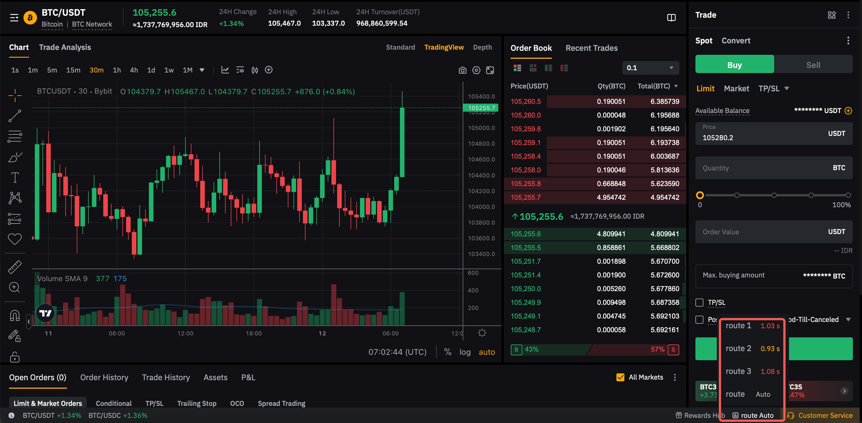 Se você não estiver usando VPN ou se já estiver desabilitado, e se sua conexão for rápida, confiável e segura, você pode verificar o sistema de roteamento da Bybit que indicará a conexão com a internet no direito inferior da sua Página de Negociação da Bybit.