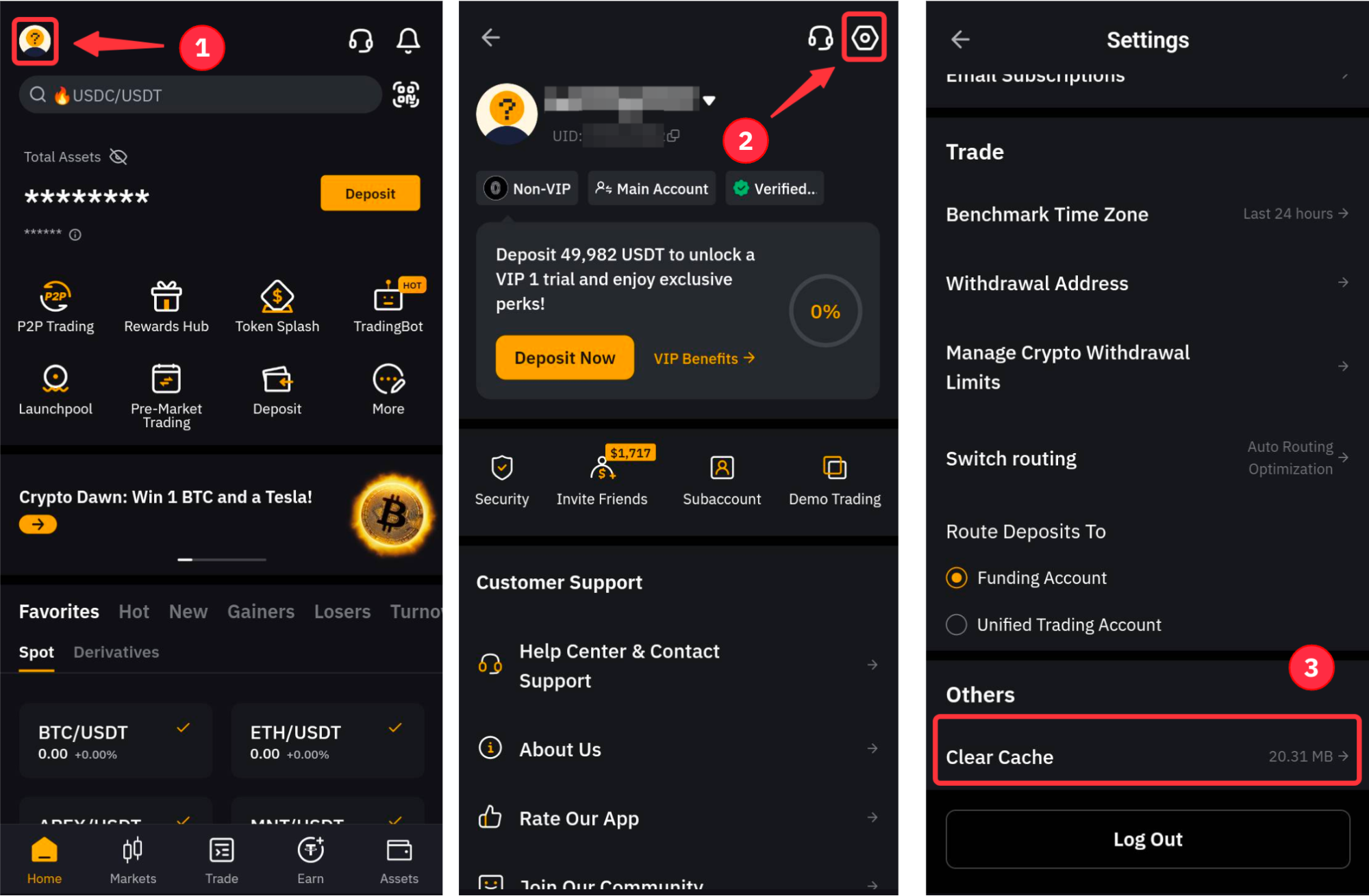 – Vá para o ícone de perfil no canto superior esquerdo da página inicial. Clique em Configurações e selecione Limpar cache para limpar o cache do seu telefone.
