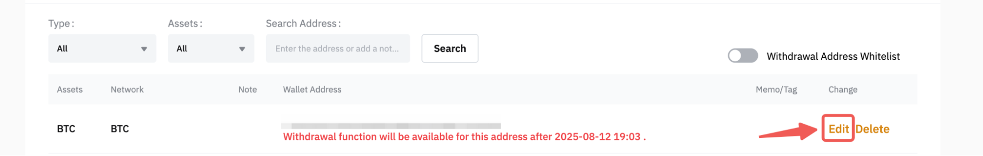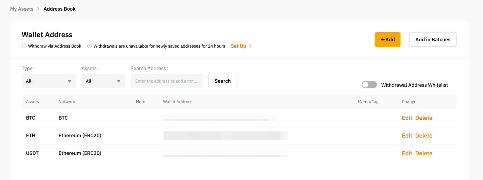 Manage Your Withdrawal Addresses