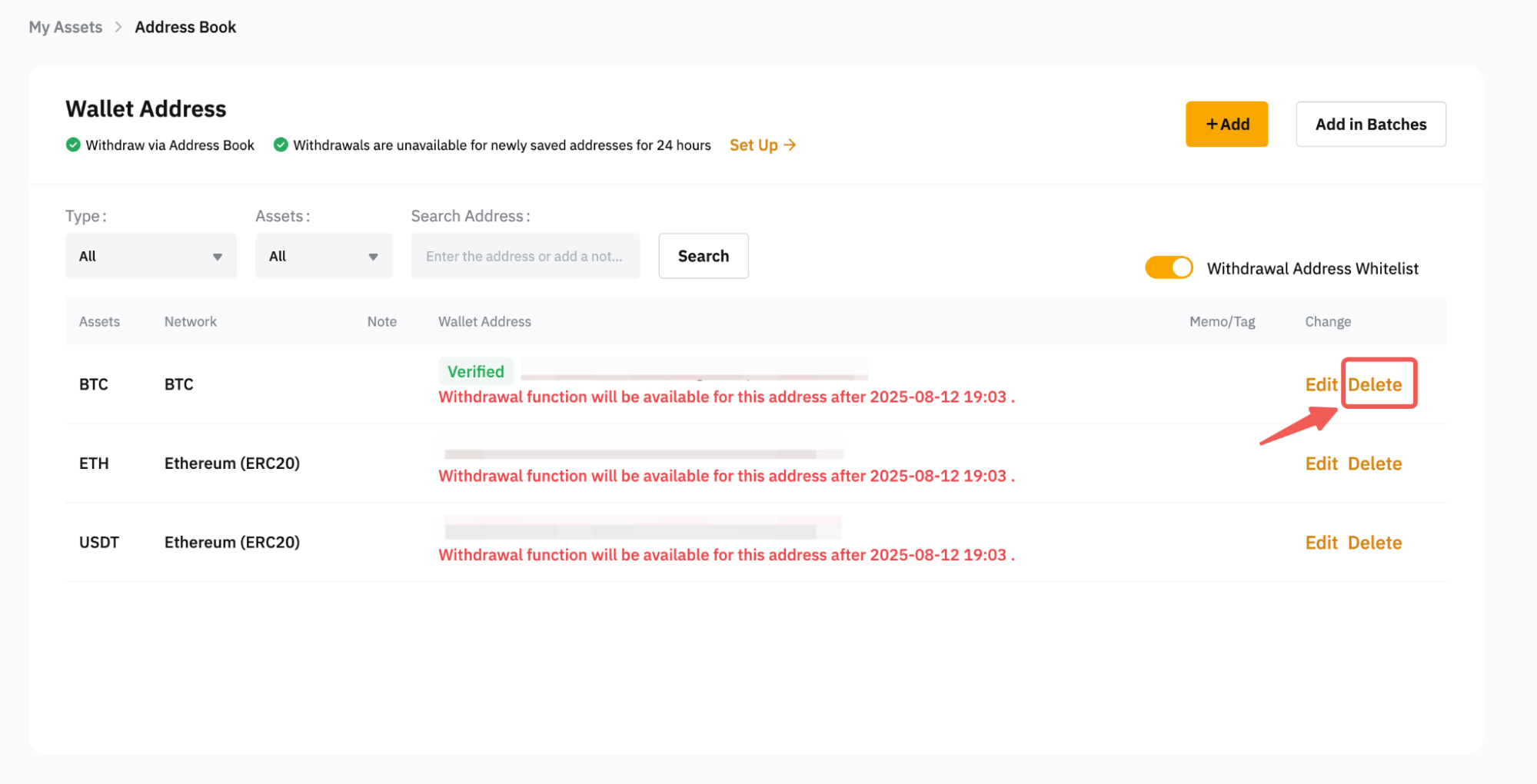 Delete Your Withdrawal Addresses