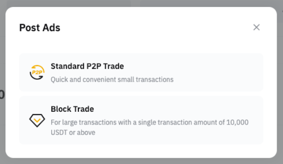 Шаг 3. Нажмите на P2P-трейдинг или Блочный P2P. Условия для публикации объявлений представлены на этой странице.