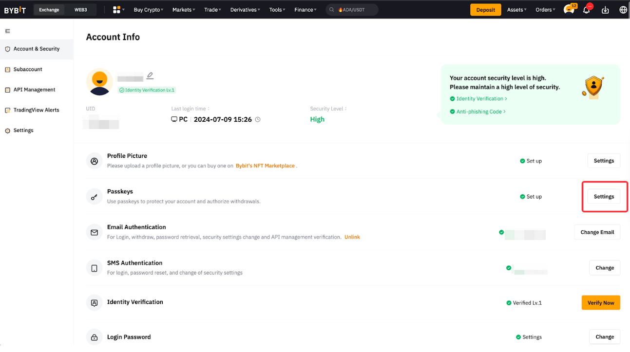 Методы верификации ключа доступа могут отличаться в зависимости от вашего устройства. Ниже представлено пошаговое руководство по добавлению ключа доступа на веб-сайт Bybit. Используйте наиболее часто используемое устройство, чтобы добавить ключ доступа на аккаунт Bybit.