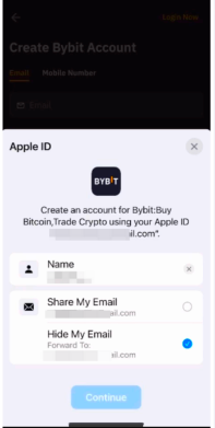 When you create your account with the Sign Up with Apple feature and select Share My Email, it will use your email address linked to your Apple ID for your Bybit account creation. However, if you have selected Hide My Email for the registration, Apple will create a unique, random email address with the @privaterelay.appleid.com domain for registration. All emails sent to an account registered using @privaterelay.appleid.com will automatically be routed to the email address linked to your Apple ID.