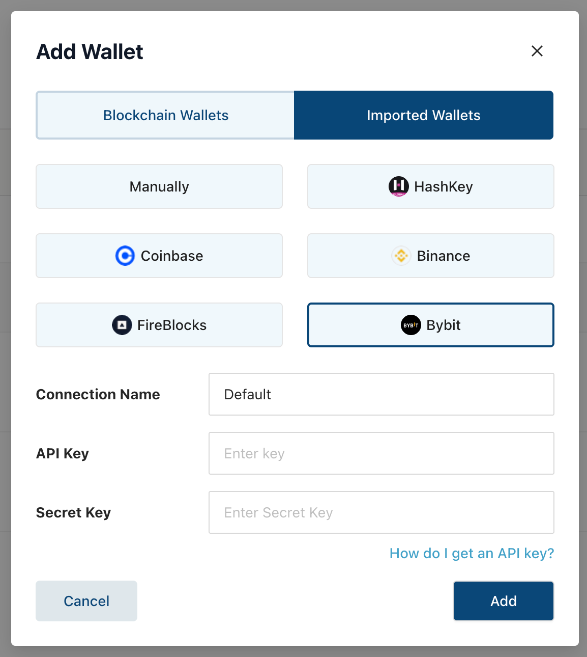 Step 6: In the pop-up window, select Bybit and enter your newly created Bybit API Key information. You will need to input: