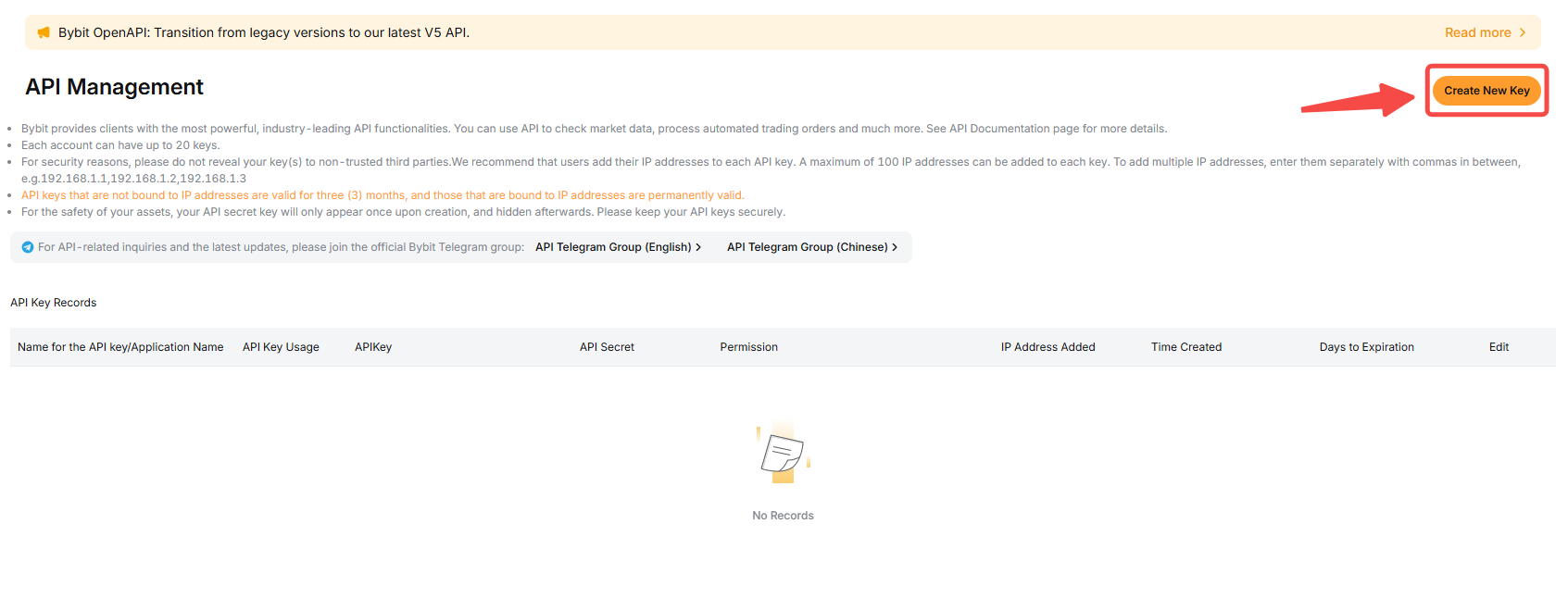 Note: While it is possible to use the Bybit App to create and manage your API keys, it is recommended to use the Bybit website for easier setup.