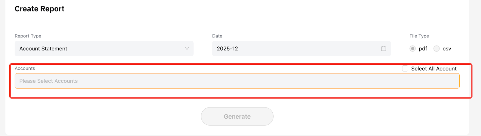 - To obtain the "Account Statement" report for subaccounts, please select the main account UID corresponding to the subaccount.