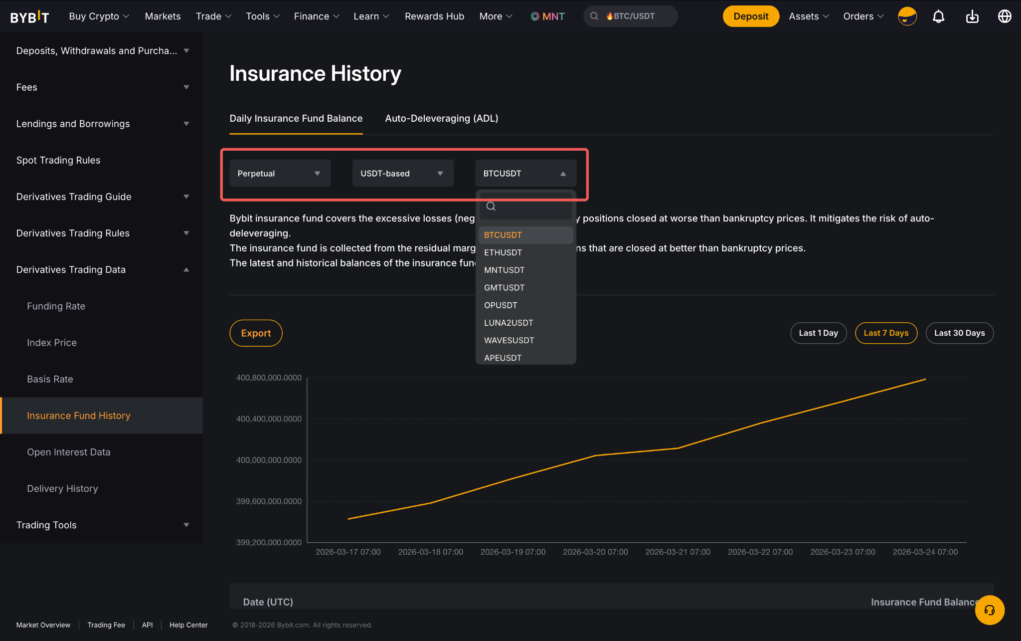 Bybit’s insurance fund is a reserve pool that the system can use to protect traders from bearing excessive losses in Futures trading. When a trader’s position is liquidated, if the closing price is better than the bankruptcy price, the trader’s remaining margin will be added to the insurance fund. However, if the closing price is worse than the bankruptcy price, resulting in a total loss of the position greater than the trader’s initial margin, the loss will be covered by the insurance fund. This mechanism also decreases the possibility of Auto-Deleveraging (ADL).