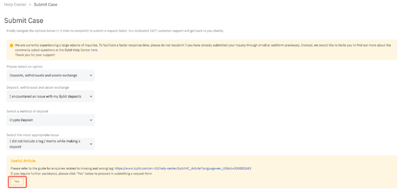 Step 2: Please submit a case on the “Did not include a tag/memo” Appeal Form. Make sure you read through the requirements stated in Step 3 before you click on Yes to proceed.