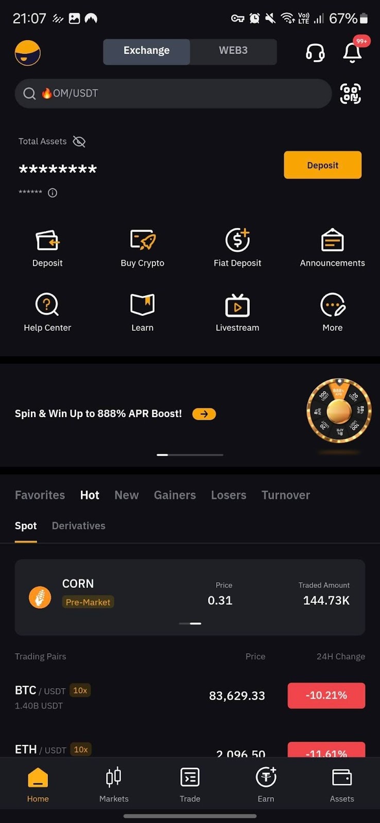 1. Depósito: Si tu cuenta actualmente no tiene criptoactivos, puedes realizar un depósito directo de fondos.
