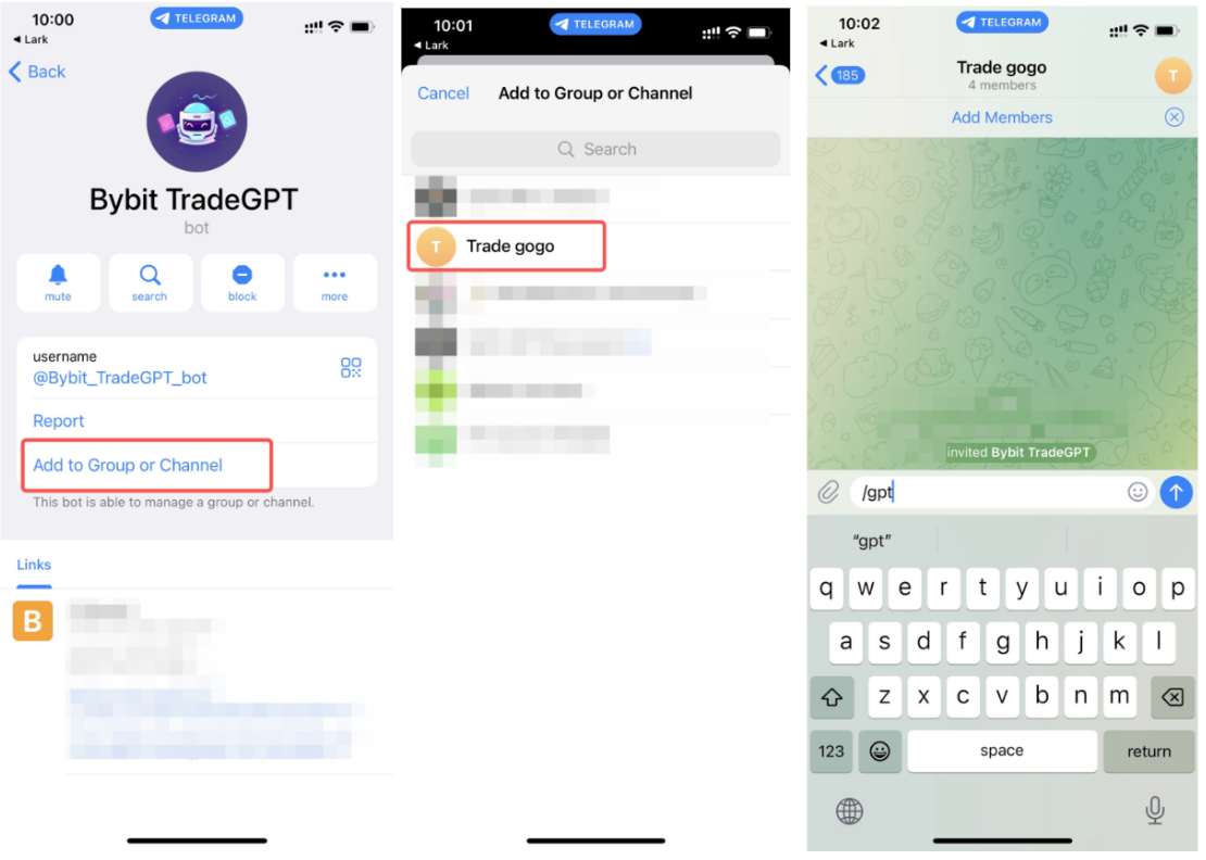 1. Haz clic en Añadir a grupo o canal en la página de información de Bybit TradeGPT.