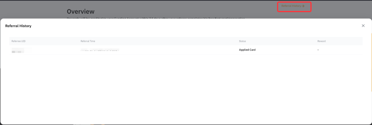 Una transacción exitosa se refiere a una transacción completada a través de la tarjeta virtual o física del referido. El referido debe gastar al menos 100 USDT o su equivalente dentro de los 30 días posteriores a una solicitud de tarjeta exitosa. Ten en cuenta que la autorización no califica como transacción completada.
