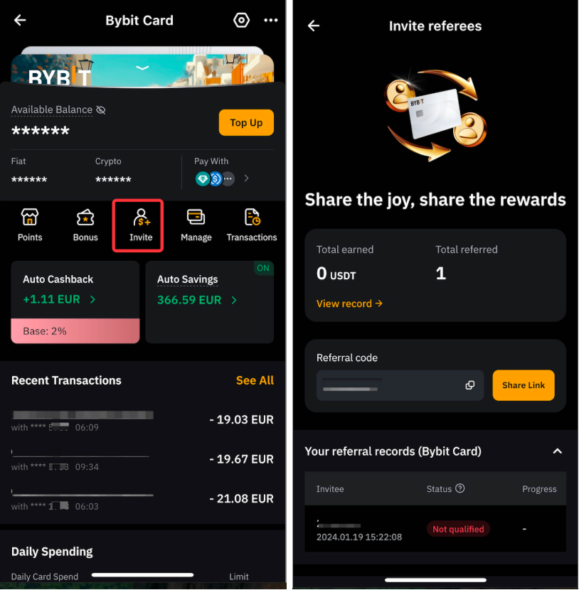 1. Referente: Cualquier usuario de Bybit. Ten en cuenta que no necesitas ser usuario de la Bybit Card para calificar como referente.