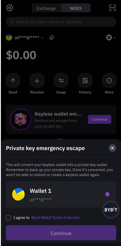 Se ha lanzado una función de escape de emergencia de clave privada para ayudar a los usuarios con los activos restantes en sus MPC (Billetera sin clave), incluso después de que estas billeteras se hayan suspendido en Billetera. Tenga en cuenta que esto no es compatible con Cloud Wallet.