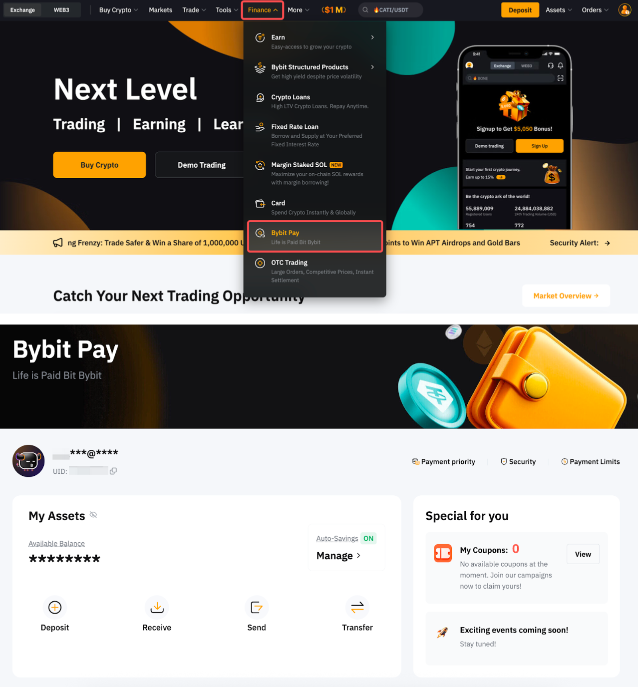 Paso 1: Inicia sesión en tu cuenta y pasa el cursor a Finanzas Bybit Pay.