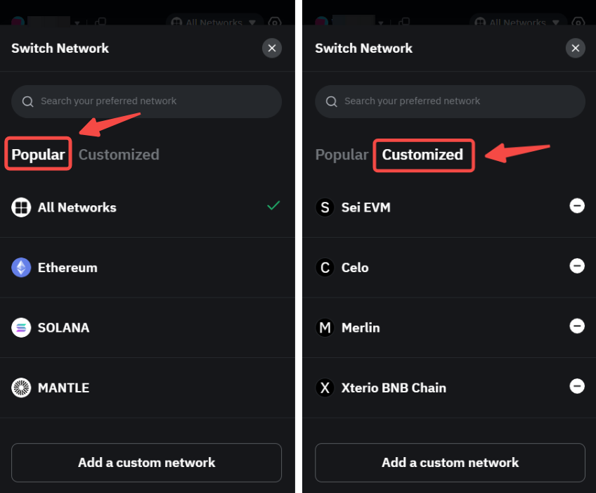 Paso 2: Localiza la red personalizada de tu interés y haz clic en ella para cambiar a esta red.