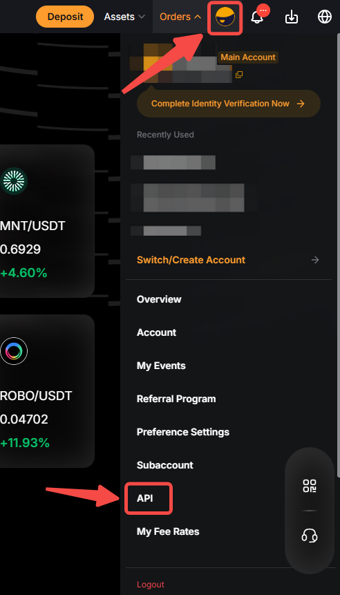 Paso 1: Inicie sesión en su cuenta de Bybit y vaya a la página de Gestión de API haciendo clic en el icono de su cuenta → API.