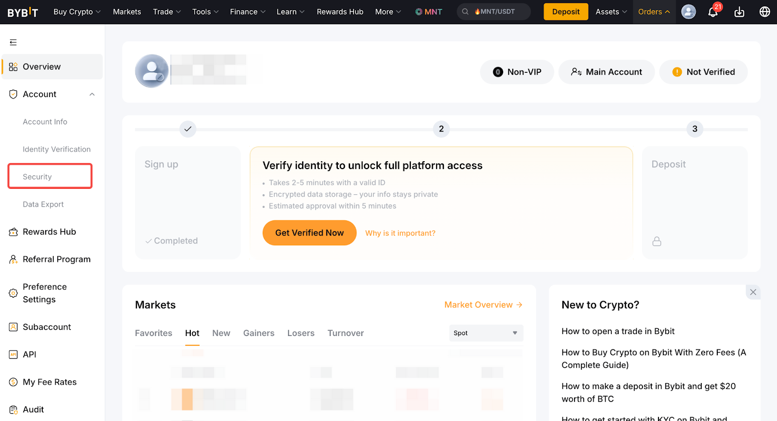 Ten en cuenta que si aún estás conectado a tu cuenta de Bybit pero has olvidado tu contraseña, deberás cerrar sesión en tu cuenta y seguir los pasos a continuación.