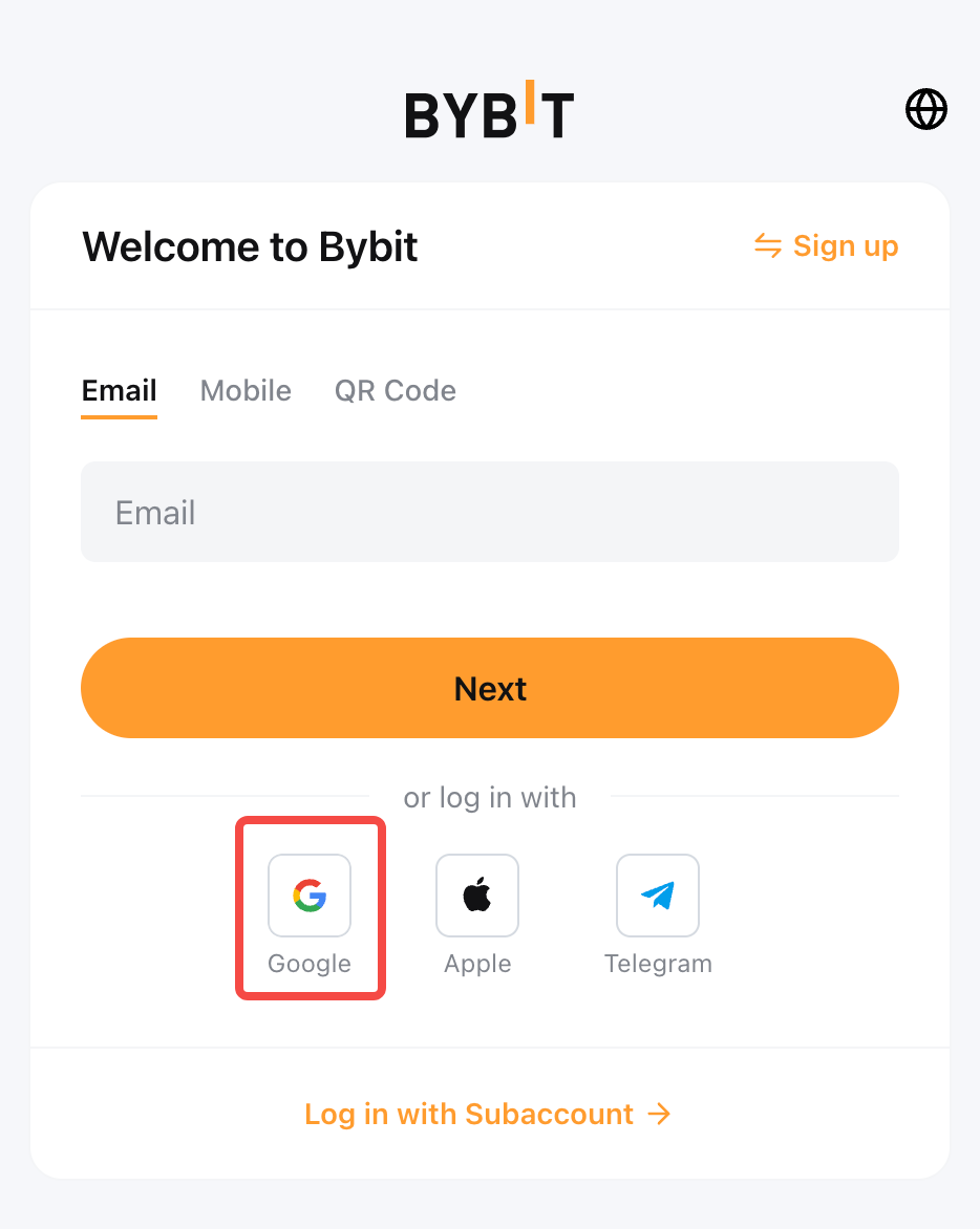 Paso 2: Introduce la dirección de correo electrónico o el número de teléfono que utilizaste para registrar tu cuenta de Bybit y toca en Siguiente para continuar.