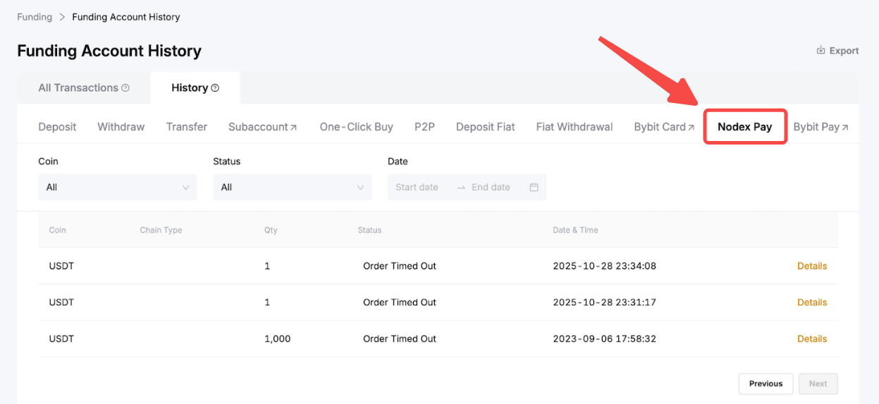 — Currently, Deposits via Nodex Pay are only supported on the Bybit website.