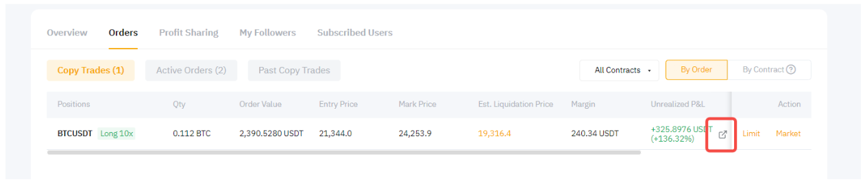 USDT無期限契約の取引:USDT無期限契約の取引で利用可能なすべての発注機能と取引ツールは、マスタートレーダー向けのものです。注文ゾーンの上で、それぞれの通貨ペアの取引をコピーしているフォロワーの数を確認できます。コピートレードでサポートされている通貨ペアを確認するには、こちらをご覧ください。