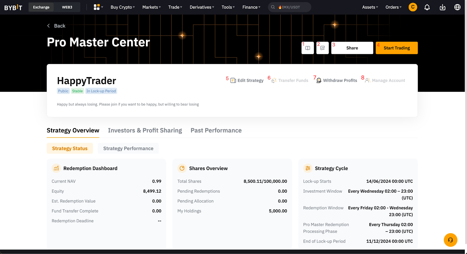 180日間のロックアップ期間が終了しました。 ロックアップ期間が近づくと、戦略は自動的に175日延長されます。 プロマスターは、必要に応じて戦略の終了を申請できます。