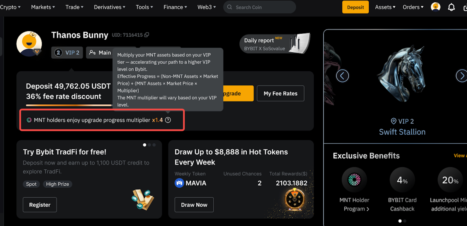 Instituições que possuem mais MNT podem desbloquear maior alavancagem entre os produtos Bybit: