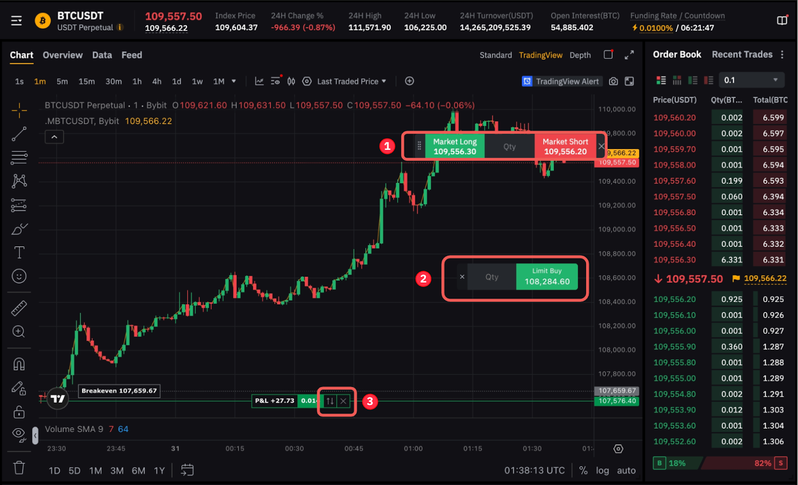 Існує три (3) типи функцій швидкої торгівлі, які наразі доступні лише на вебсайті Bybit.