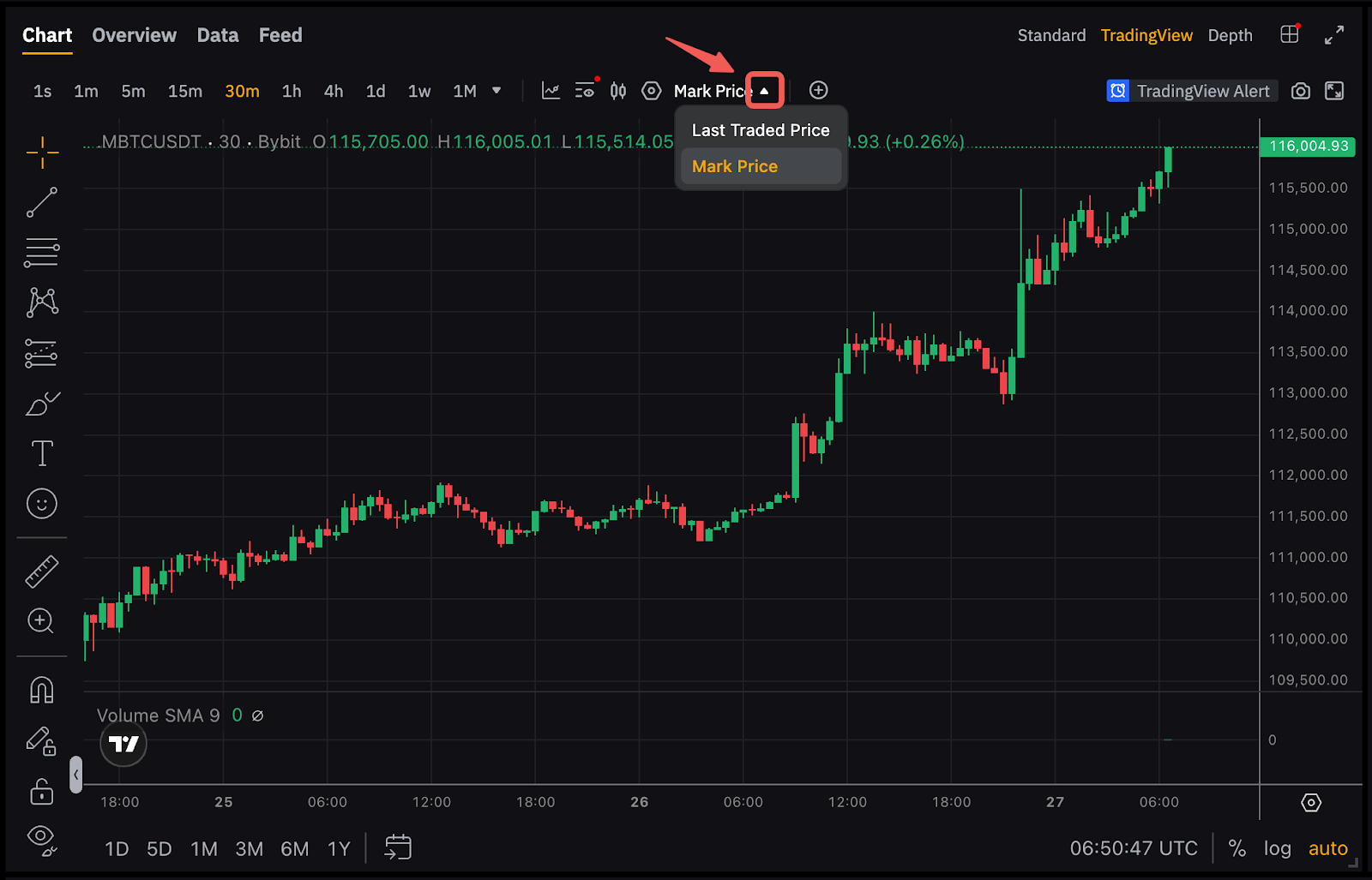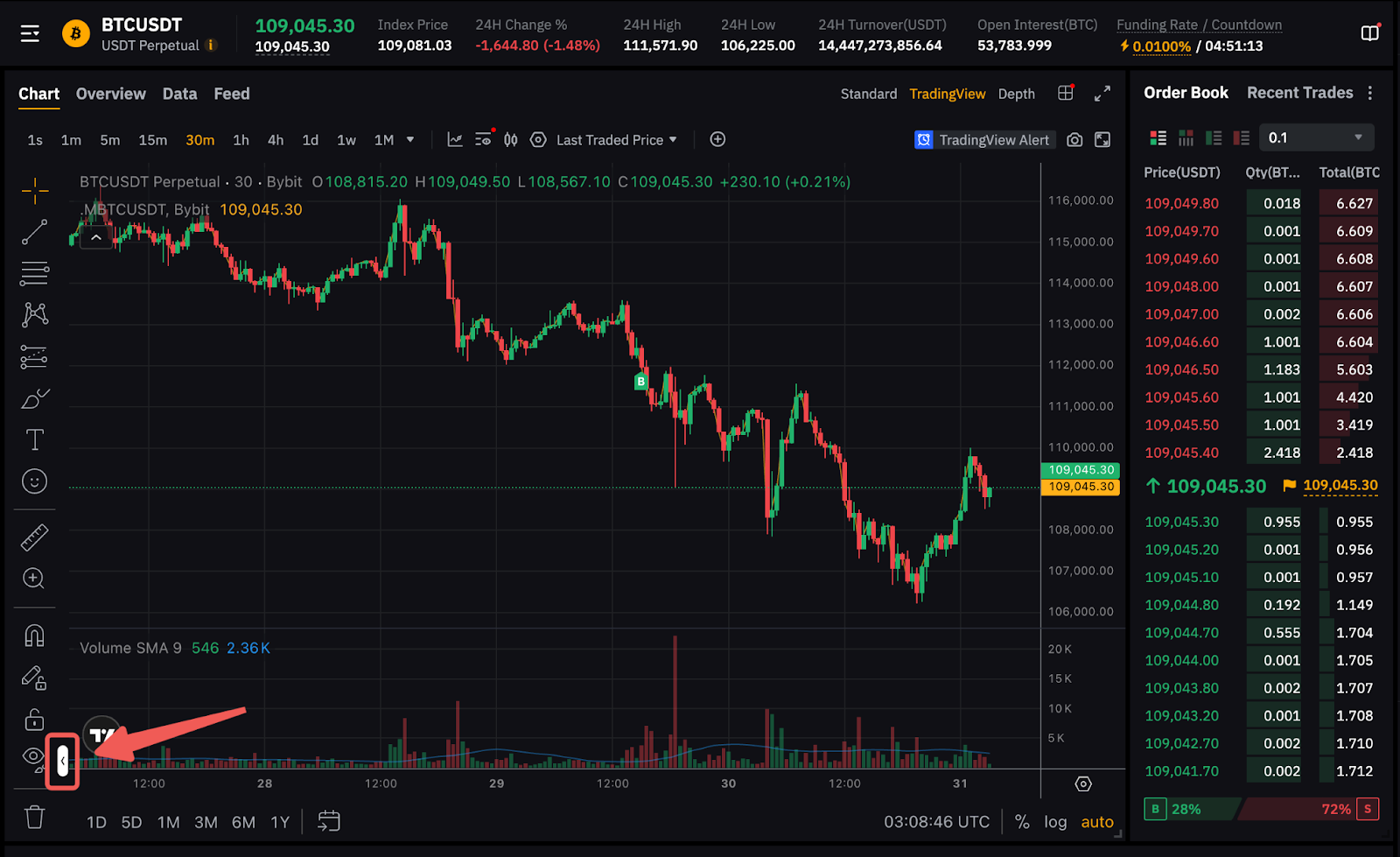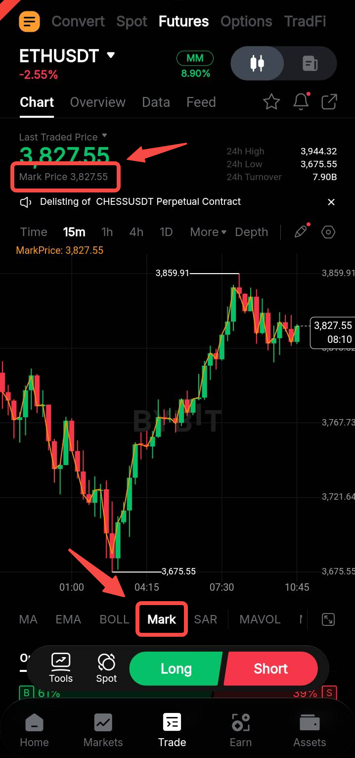 У додатку Bybit ви можете увімкнути індикатор Маркування внизу графіка.