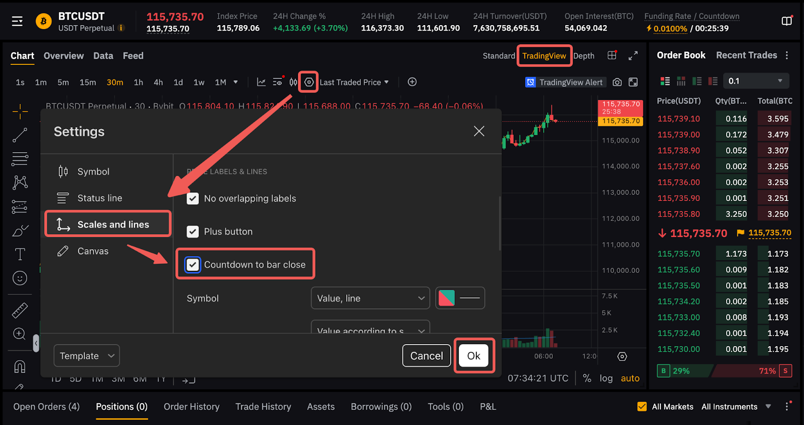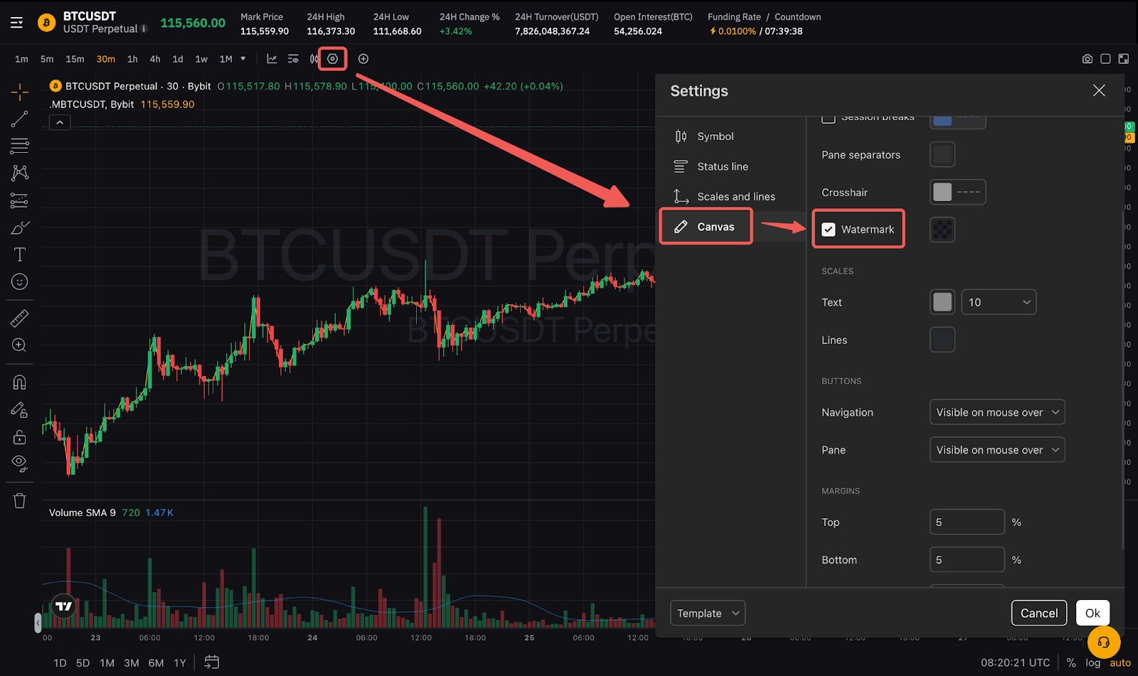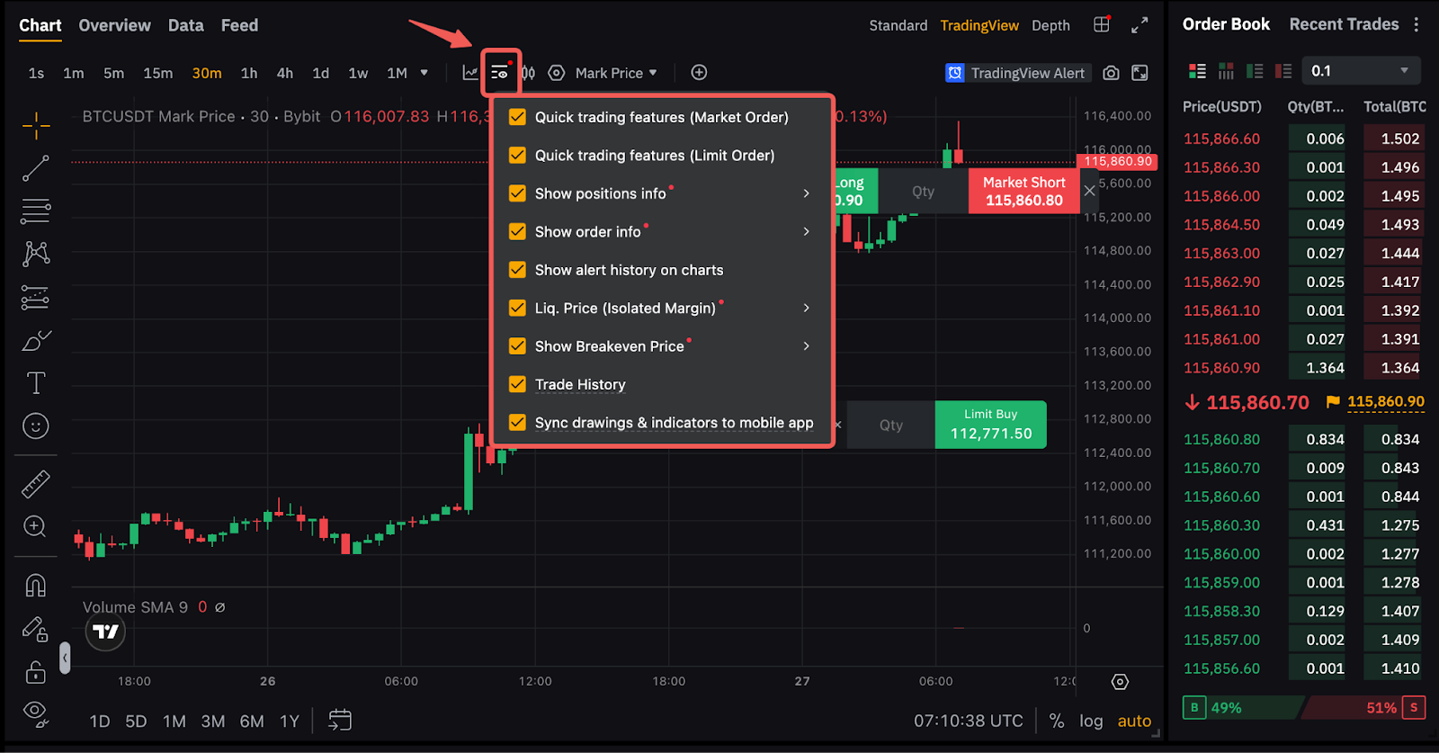 У додатку Bybit ви можете увімкнути індикатор Маркування внизу графіка.