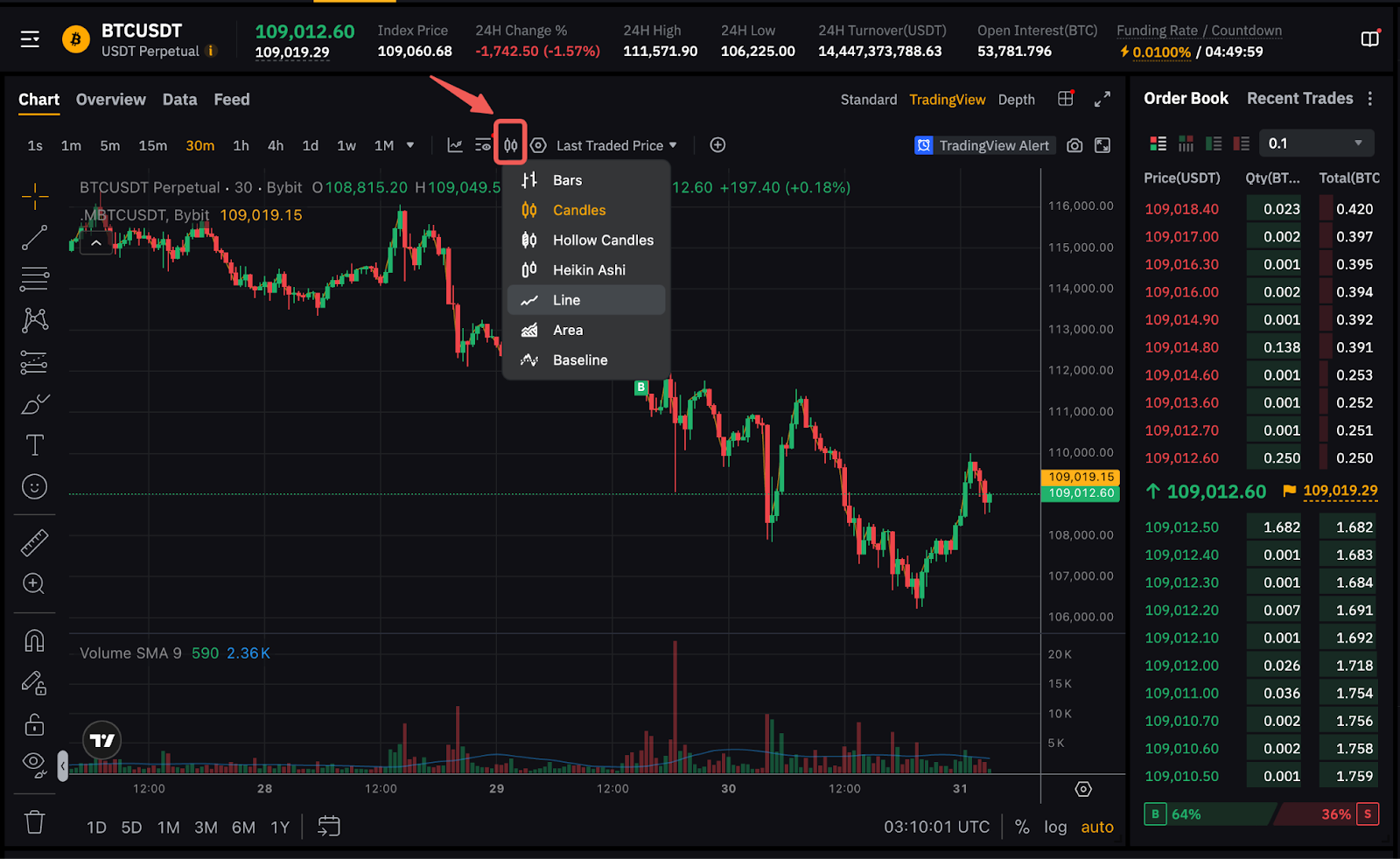 Чи можу я побачити графік Спотового Ринку Bybit в TradingView?