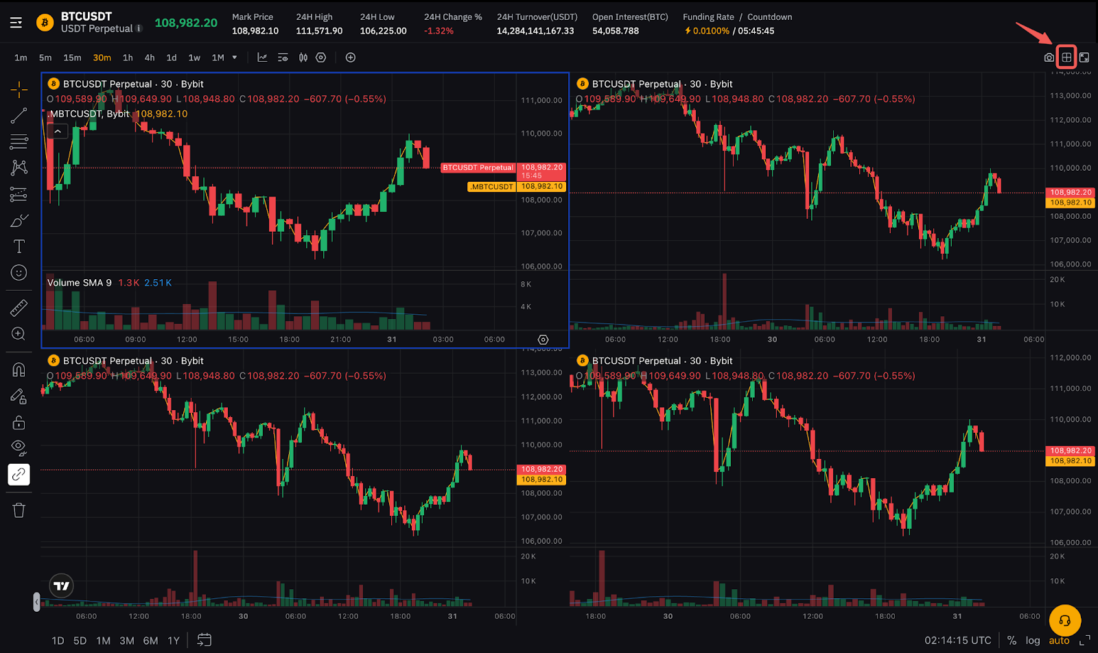 Натисніть на піктограму з декількома діаграмами у верхньому правому куті діаграми. Ви можете вибрати до 5 (п’яти) діаграм у режимі перегляду з декількох діаграм із доступних шаблонів.