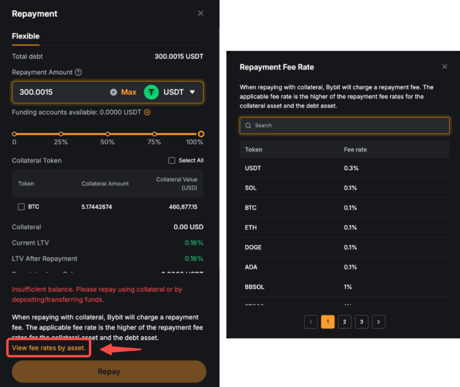 Приклад: Якщо ви використовуєте заставу в BTC для погашення боргу в USDT, застосовна ставка комісії буде вищою зі ставок комісії за конвертацію монет BTC і USDT.