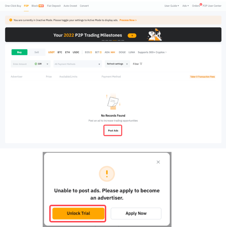 — Пробний мерчант може розміщувати оголошення лише у фіатній валюті, яка збігається з його KYC. Оголошення в іншій валюті не дозволяються.