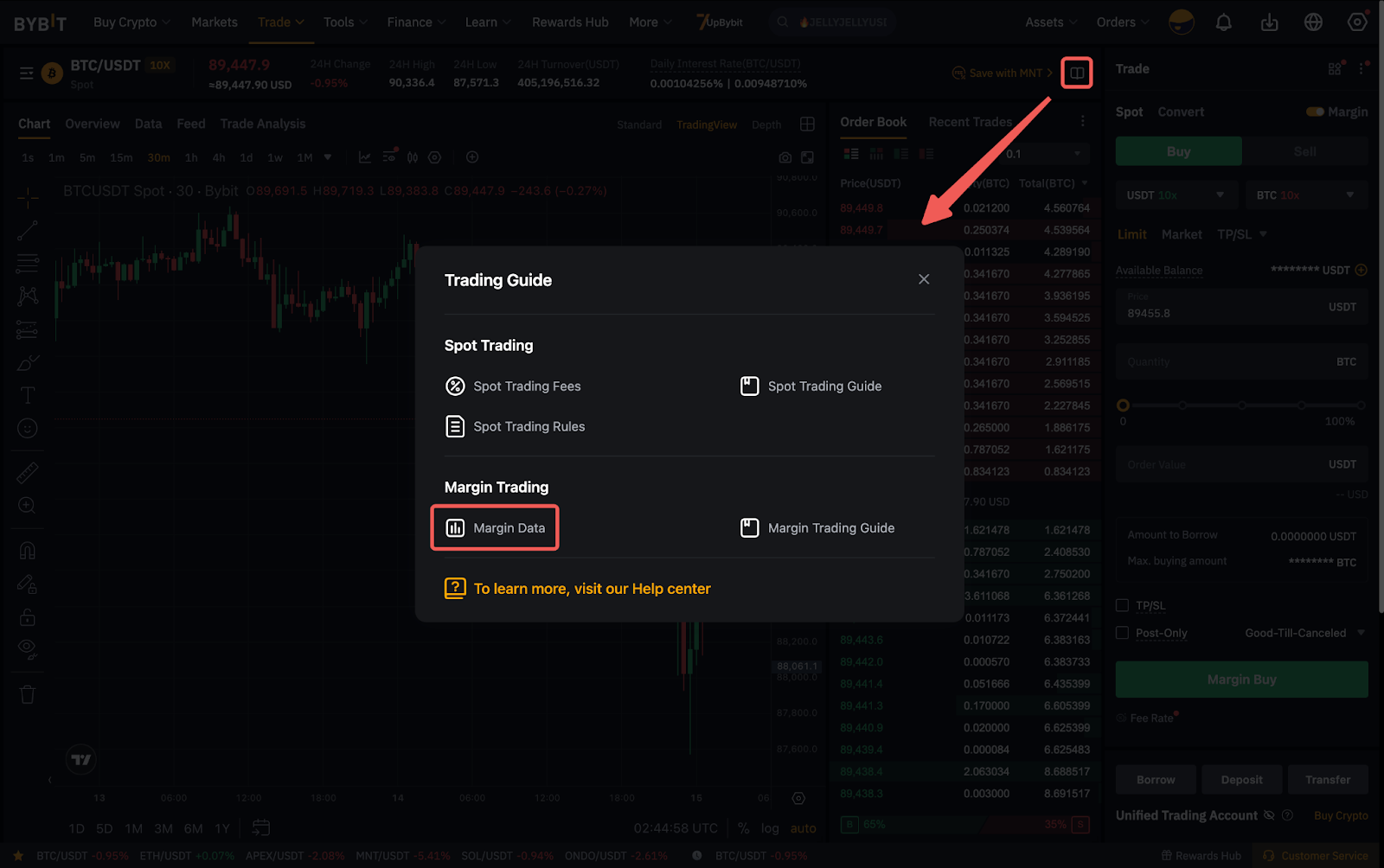 Щоб переглянути останні відсоткові ставки для спотової маржинальної торгівлі, натисніть Торг.посібник → Дані про маржу. Ви також можете переглянути відсоткові ставки для різних VIP-рівнів.