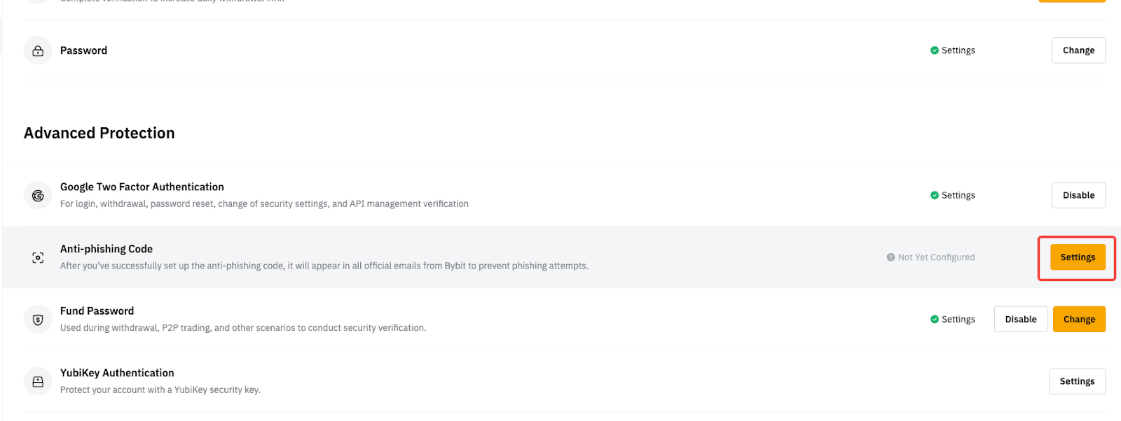 Щоб запобігти спробам фішингу, компанія Bybit наполегливо рекомендує налаштувати антифішинговий код через вебсайт або додаток. Якщо ви не налаштували свій антифішинговий код, перейдіть на сторінку «Акаунт і безпека» та дотримуйтесь цього посібника, щоб розпочати.