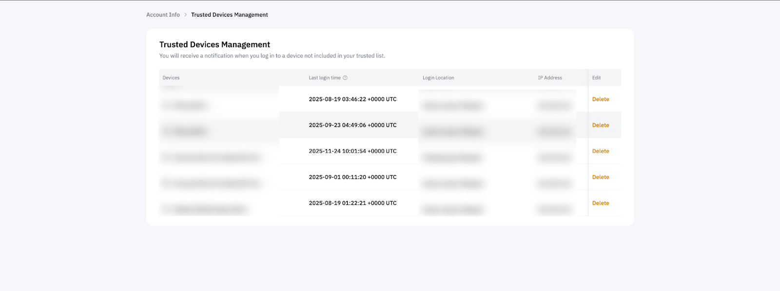 Керування довіреними пристроями є важливим кроком у забезпеченні безпеки вашого Облікового запису Bybit. Регулярний перегляд та оновлення списку пристроїв дає змогу отримувати доступ до вашого облікового запису лише на пристроях, які ви розпізнали.
