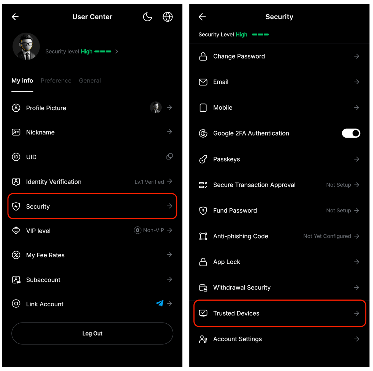Біометричні засоби, що використовують пасивний ключ FIDO, які зберігаються на вашому пристрої, забезпечують безпечну перевірку на кількох пристроях. Цей пасивний ключ підвищує безпеку транзакцій, додаючи додатковий рівень захисту для захисту вашого акаунта, забезпечуючи при цьому швидші та безпечніші виведення коштів. Додаткову інформацію можна знайти в цій статті.