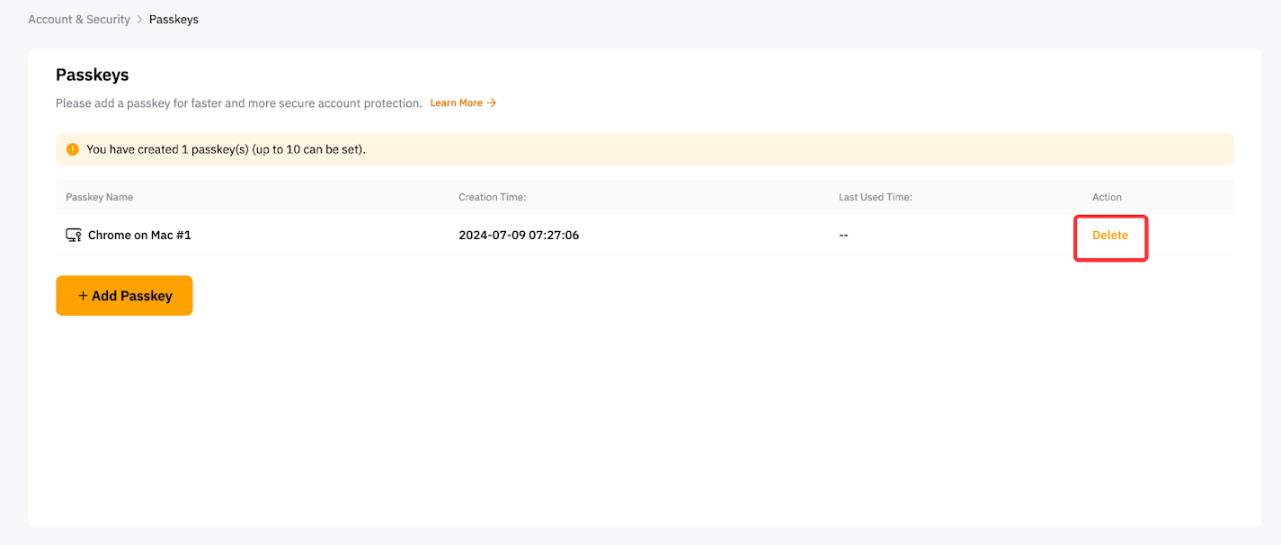 2. З метою безпеки акаунта та активів видалення Passkey призведе до 24-годинного обмеження виведення.