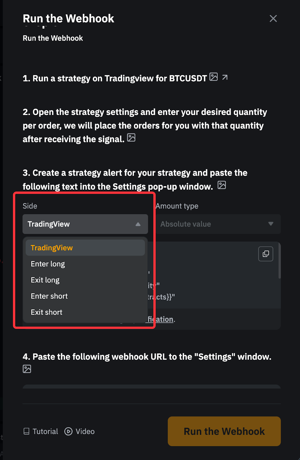 3. Абсолютне значення означає, що вебхук розмістить ваш ордер на основі налаштованої кількості.