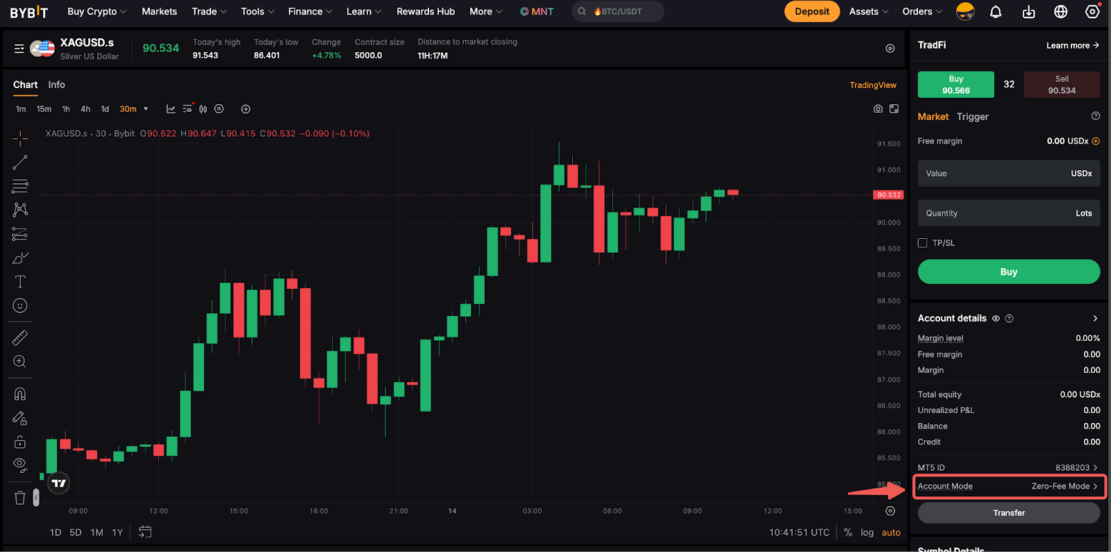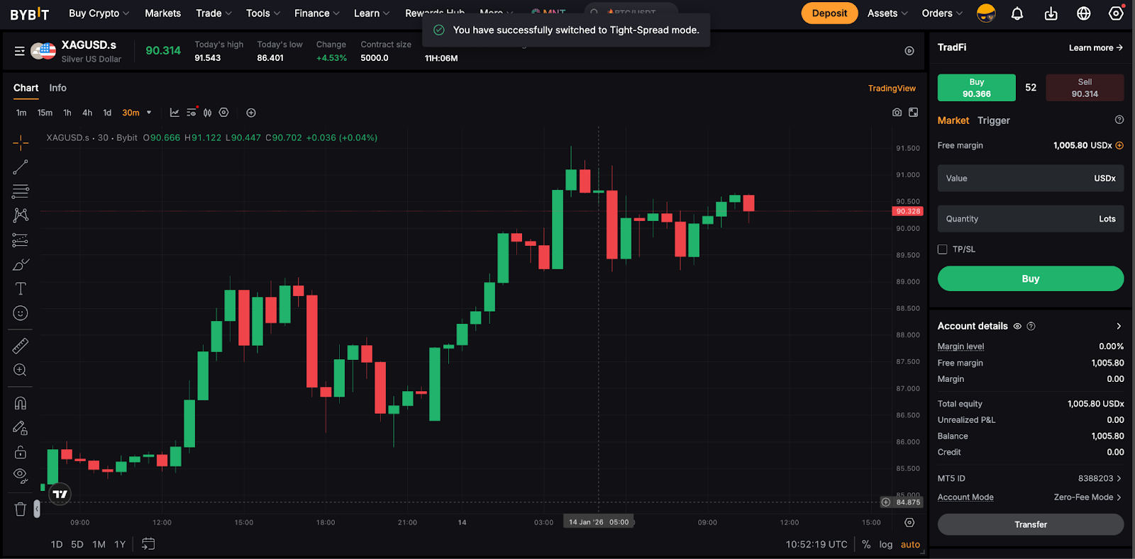 За замовчуванням для торговельного інтерфейсу TradFi для користувача встановлено режим «Безкоштовний», тоді як режим Tight-Spread можна ввімкнути лише за допомогою спеціальних вимог. Користувачі можуть визначити поточний режим облікового запису TradFi, перевіривши розділ Режим облікового запису в розділі Відомості про обліковий запис.