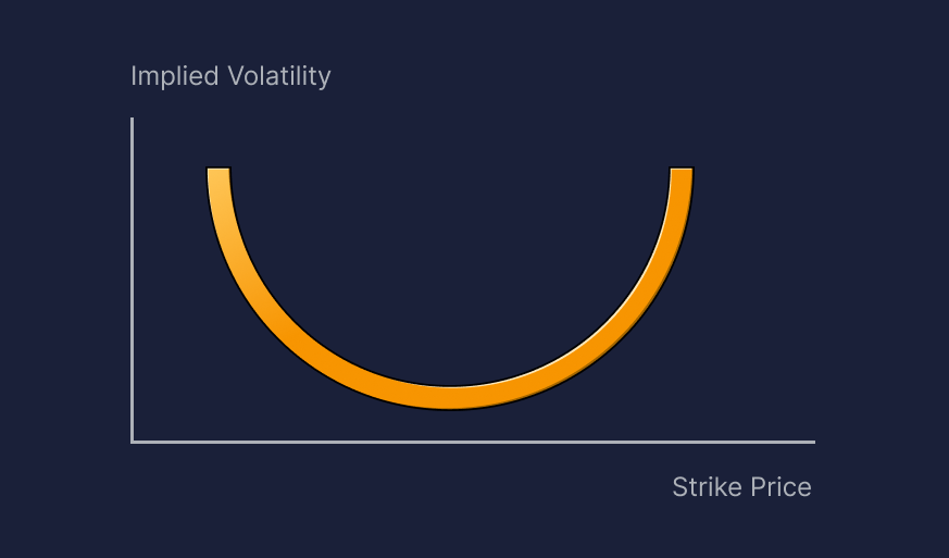 Ми з'єднуємо значення IV різних страйк-цін, щоб сформувати криву. Крива симетрична з лівої та правої сторін називається усмішкою волатильності, а асиметрична крива — посмішкою волатильності. Асиметрія відноситься до нахилу цих IV значень.