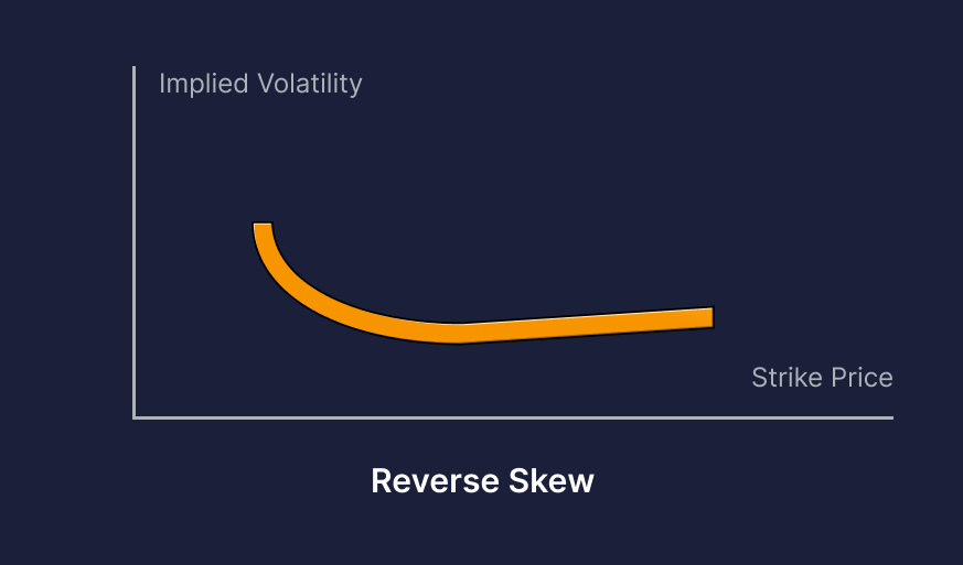 Зворотня крива виникає, коли ціна IV вища при нижчих страйк-цінах опціону.
