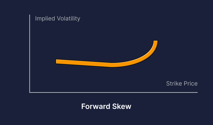 Пряма крива виникає, коли опціони з більш високою страйк-ціною мають вищі IV, ніж нижчі страйк-ціни.