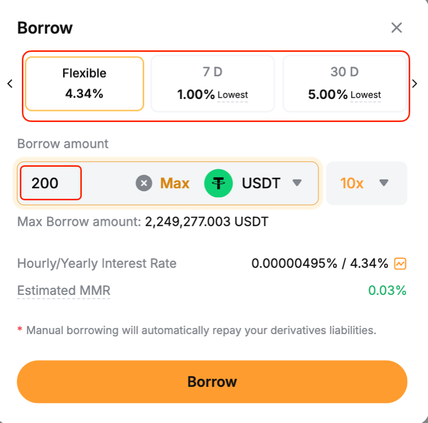 Крок 2: Виберіть тип позики (гнучкий або фіксований) та введіть суму. Натисніть Позика для підтвердження.