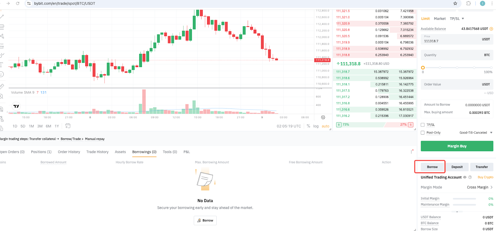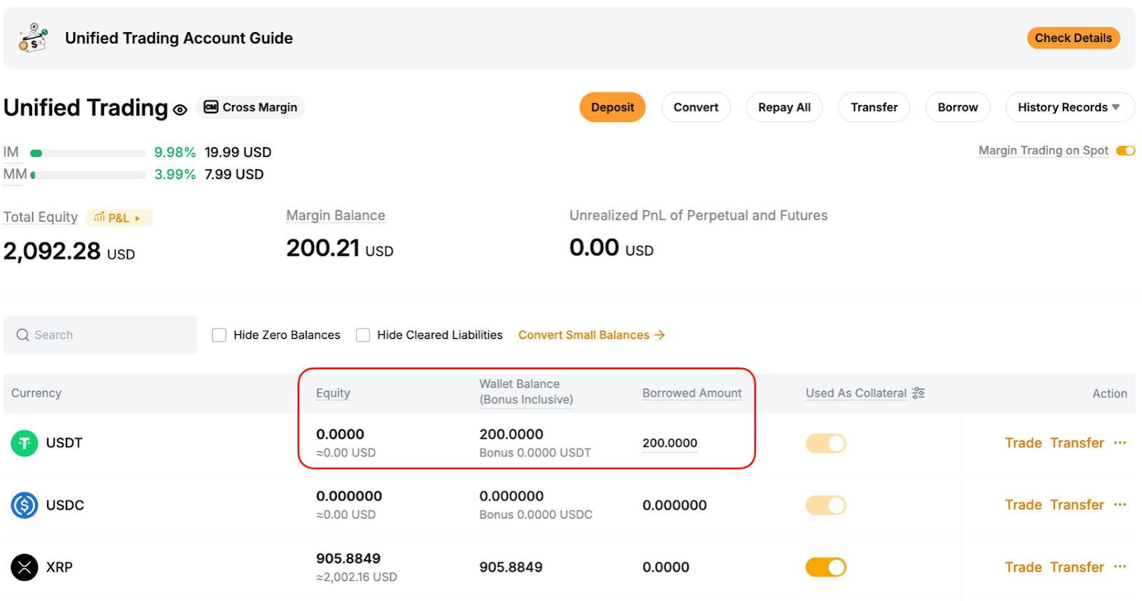 Наприклад, якщо ви позичили BTC, але наразі його не маєте, то купівля BTC за USDT у спотовій парі BTC/USDT автоматично зарахується як погашення боргу. Отриманий BTC вважається таким, що був переказаний на ваш Єдиний Торговий Акаунт.