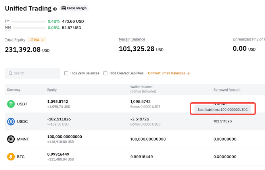 До оновлення всі зобов’язання в Єдиному торговому акаунті розглядалися як єдиний сукупний баланс. Після оновлення вони будуть поділені на зобов’язання Спот та зобов’язання за Деривативи. Цей поділ впливатиме на порядок здійснення погашень.