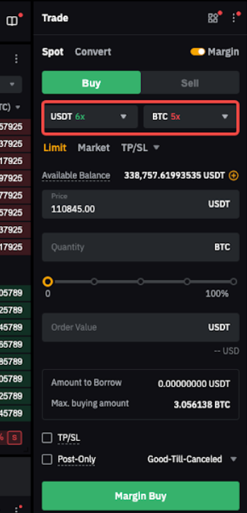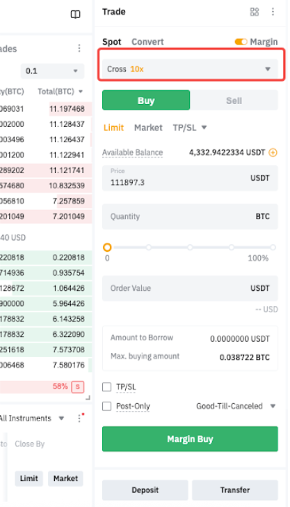 Налаштування кредитного плеча для Спотової Маржинальної торгівлі