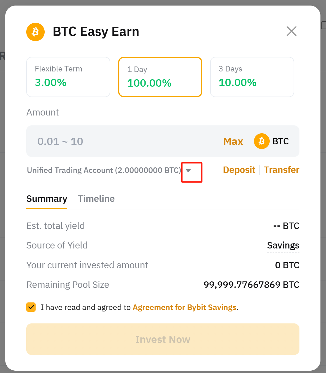 Bạn cũng có thể chọn quy đổi vốn gốc về Tài Khoản Vốn hoặc Tài Khoản Giao Dịch (UTA). Tuy nhiên, lợi nhuận sẽ luôn được ghi có vào Tài Khoản Vốn của bạn.